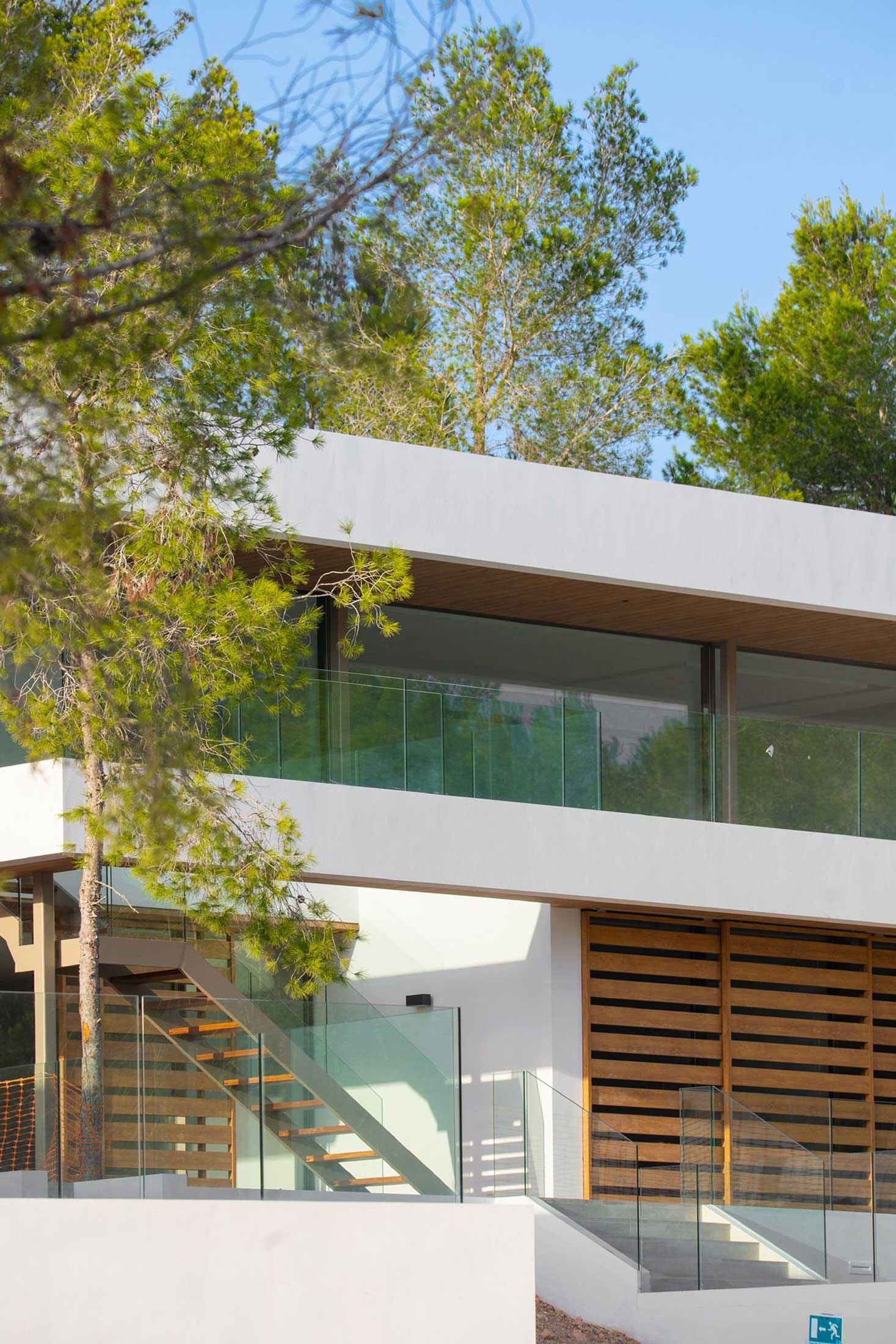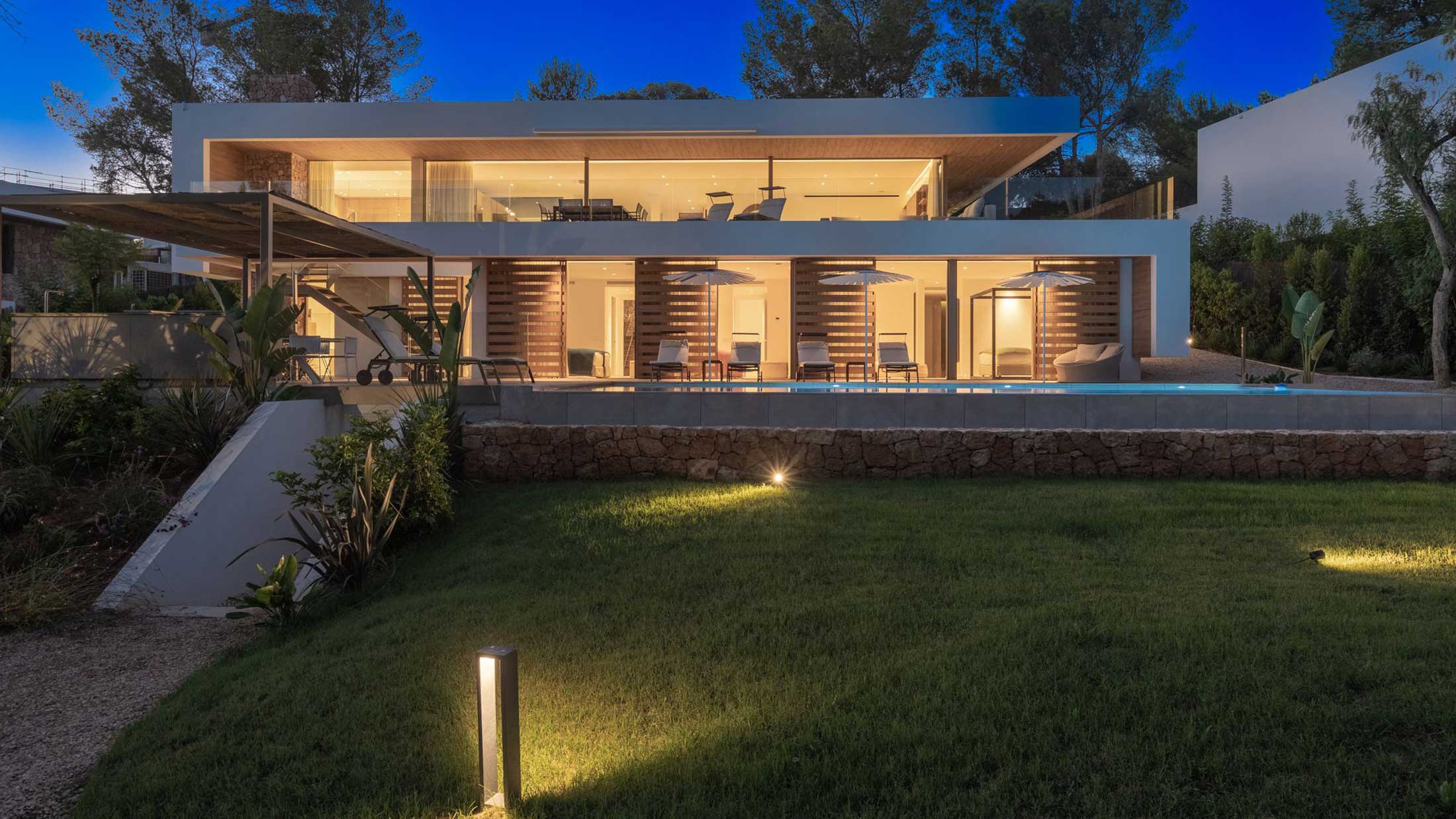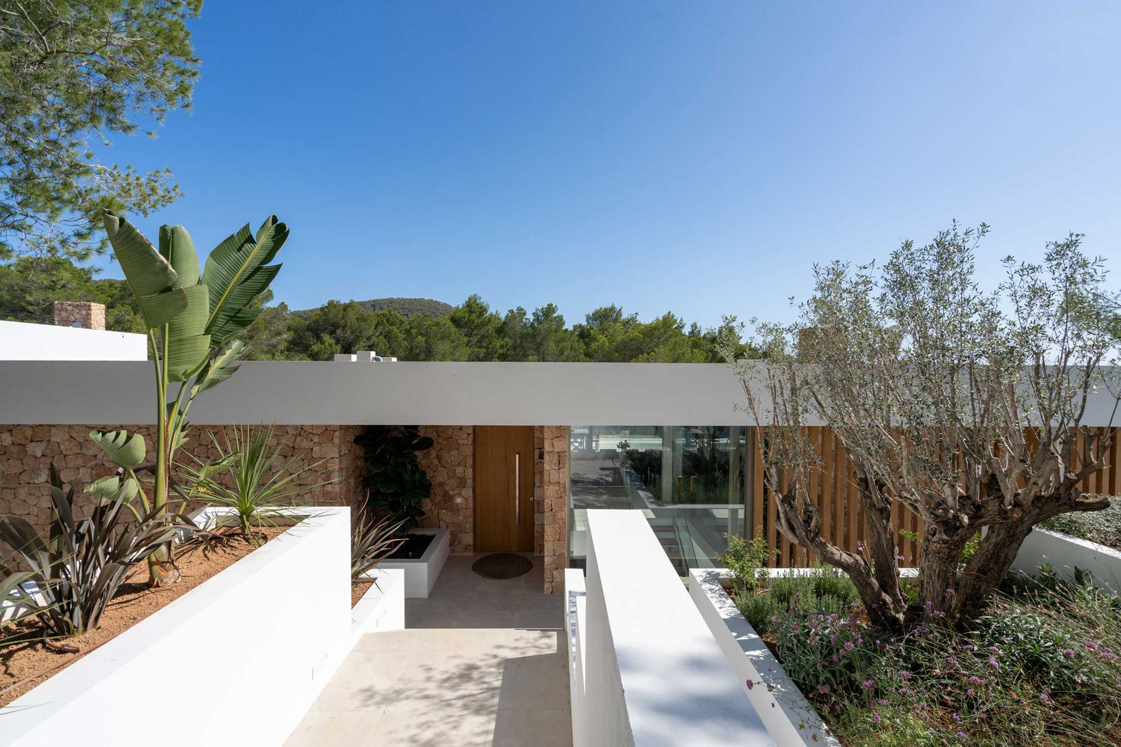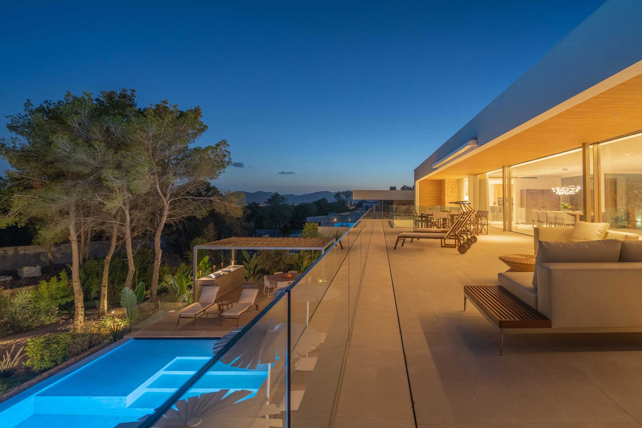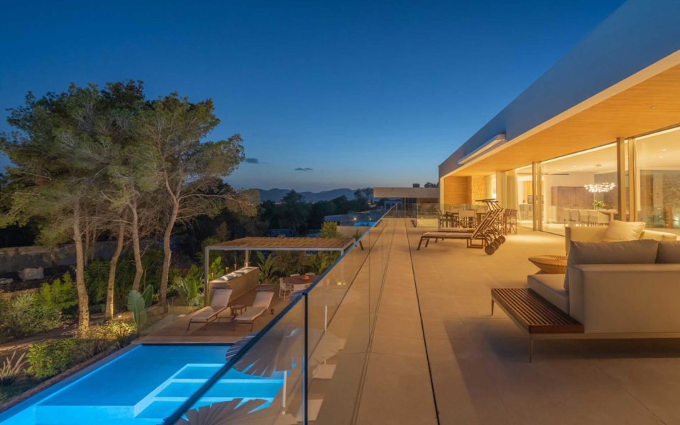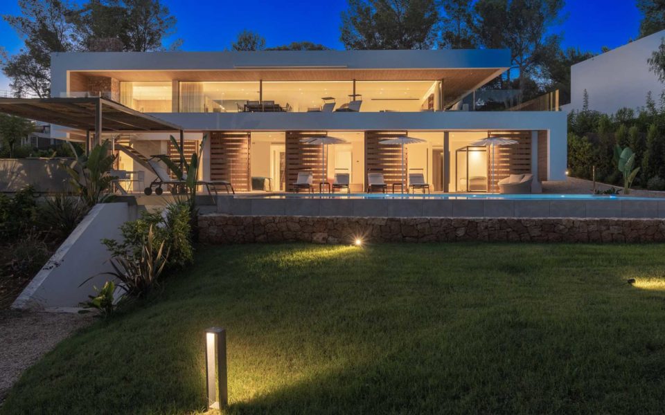 In a haven of tranquillity and surrounded by green meadows, strewn with Mediterranean pine, oak, almond, olive, fig and carob trees, stands Can Aubarca, halfway between the capital city of Eivissa and the wonderful beach of Callalonga, and just 10 minutes from the airport. In a privileged setting and with impressive views, the architectural design of each of these homes is unique and exclusive, respecting the natural environment. The trees and plants in the area are integrated into the villas themselves through their private gardens.